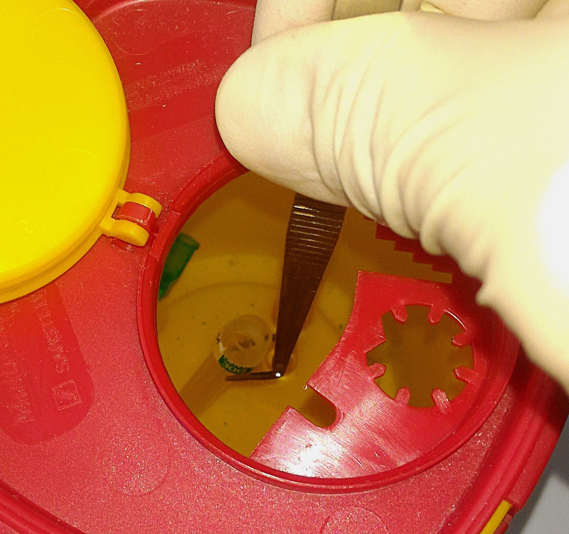 Как проводить дезинфекцию и утилизацию карпульных игл в стоматологии? У большинства медицинских сестёр возникает такой вопрос. Как утилизировать обычные иглы подробно изложено в СанПиН 2.1.7.728—99 «Правила сбора, хранения и удаления отходов лечебно-профилактических учреждений». Но как быть с карпульными шприцами, ведь они там не указаны, а утилизировать их как иглы обычных шприцев не получится, так как открутить без колпачка иглу невозможно, а также можно травмировать пальцы из-за нарушения техники безопасности при утилизации и соответственно будет нарушен пункт 4.33. СанПиН 2.1.7.728—99